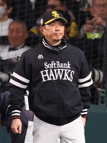 阪神対ソフトバンク 選手交代を告げる小久保監督(撮影・上田博志)
