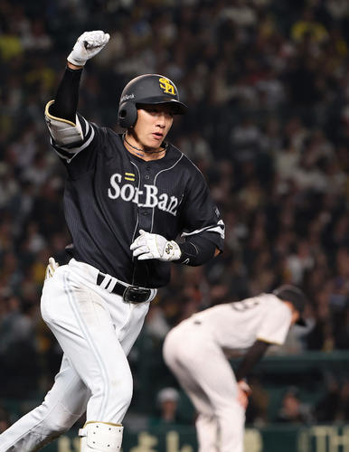 2点を追う8回1死一塁から柳田悠岐外野手(37)が起死回生の同点2ラン。初球、阪神石井の外角150キロ直球を流し打ち。打球は左翼ポール際へ飛び込んだ。今シリーズ1号弾で、試合を振り出しに戻した。延長に入り、2−2の11回。先頭の野村勇内野手(28)が阪神村上から右翼へソロを放ち、勝ち越しに成功した。第1戦で黒星発進したが、そこから一気の4連勝。1勝1敗で迎えた甲子園で無傷の3連勝とし、前身の南海、ダイエー時代を含め12度目の頂点に立った。