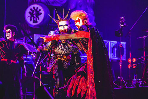 今年地球デビュー40周年を迎え、期間限定で再集結中。ゴジラのSEで構成員が登場すると、インスト曲「創世記」を披露。ステージ中央に石棺は運ばれ、そのふたが開くとこぼれ落ちる白い煙と共にデーモン閣下が登場。「うひゃひゃひゃひゃひゃ〜! 期間限定再集結聖飢魔II」で「Fire After Fire」へ。会場は腕を振り上げ、ヘッドバンギングでノリノリ。ラストはデーモン閣下のシャウトが会場にとどろいた。その後はドラムソロから「老害ロック」へとつなげた。