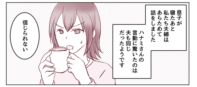 やっぱりハナミさんは私たち夫婦に、姉として「自分の方が上」ということを思い知らせたいのかもしれません。タイヨウくんに「たっくん」という呼び名をつけたのも、もはやわざとだとしか思えなくなってきました。「たぁくん」とか「たいくん」とか、他にいくらでも呼ぶ方法はあるのに……。わざわざ勝ち誇ったように「そっちの呼び名を変えろ」と言ってきたから、もはやそうとしか考えられないのです。