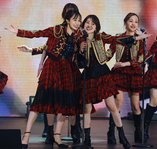 2曲目に前田だけでなくAKB48の代表曲でもある「フライングゲット」を披露した。センターに華やかに立つ前田の姿に、大きな歓声が上がった。指原莉乃(33)、柏木由紀(34)も加わり、「みんなで一緒に歌いましょう!」と会場を1つにした。