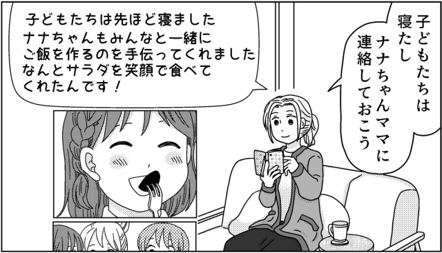 お泊まり会が終わり、私はナナちゃんが笑顔でサラダを食べてくれた写真をラインで送りました。