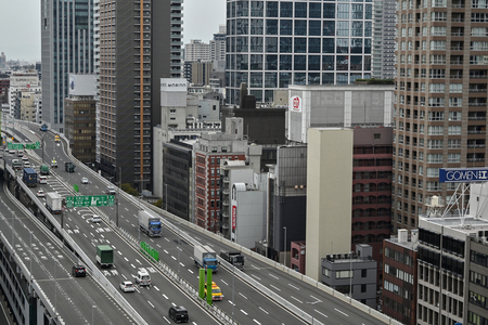 大阪中心部のビル群の脇を通る高速道路=4月10日(AFP時事) 政府・与党は16日、電気自動車(EV)について、車両重量に応じて追加で課税する方針を固めた。2028年5月からの導入を目指す。道路の劣化を早める重い車体のEVが増える中、インフラ維持費に充てるため、相応の税負担を求める声が上がっていた。燃費性能に応じた「エコカー減税」の延長なども含め、自動車に関する26年度税制改正の全容が固まった。