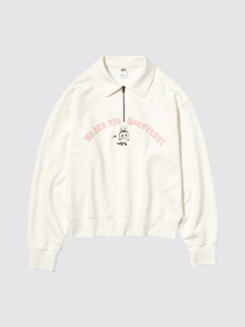 「POP MART ハーフジップスウェットシャツ」(税込 2990円) (C)POP MART & How2work Limited & Kasing Lung. 「ユニクロ」のグラフィックTシャツブランド「UT」とPOP MARTの人気シリーズ“ザ・モンスターズ”とのコラボレーションコレクションより新作の「ハーフジップスウェットシャツ」が、12月26日(月)から、全国の「ユニクロ」店舗およびオンラインストアで発売される。