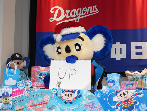 球団は来季、90周年という節目を迎え、スローガンは「ドラあげ」。自身の名前が含まれていることもあり、ドアラもお気に入りの様子。「みんなでドラあげ」と意気込み、グッズ売り上げ好調の頼もしいマスコットとともに、悲願のAクラス入りを目指す。【佐瀬百合子】