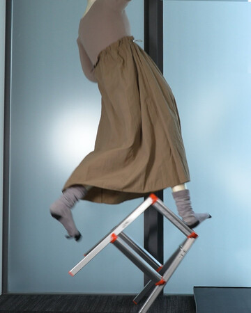 バランスを崩し、踏み台から転落する事故の再現(NITE提供) 窓拭きや高い場所の片付けなど、大掃除で踏み台を使用する機会が増える年末。使い方を誤って転落する事故がたびたび起きているとして、製品評価技術基盤機構(NITE)が注意を呼び掛けている。