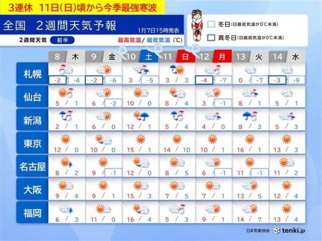 9Æü(¶â)¤ÏÅß·¿¤Îµ¤°µÇÛÃÖ¤¬´Ë¤ß¡¢´¨µ¤¤â¼å¤Þ¤ë¤Ç¤·¤ç¤¦¡£¤¿¤À¡¢3Ï¢µÙ½éÆü¤Î10Æü(ÅÚ)¤Ï¡¢Á᤯¤âÄ㵤°µ¤¬ÆüËܳ¤¤«¤é¶á¤Å¤¯¸«Ä̤·¤Ç¤¹¡£ÆüËܳ¤Â¦¤Ï¼¡Âè¤ËÀã¤ä±«¤ÎÈϰϤ¬¹¤¬¤ê¡¢Ë̳¤Æ»¤ÎÆüËܳ¤Â¦¤«¤éËÌΦ¤ÏÌÔ¿áÀã¤Ë¤è¤Ã¤Æ»ë³¦¤¬Á´¤¯¤¤«¤Ê¤¤¤è¤¦¤Ê¥Û¥ï¥¤¥È¥¢¥¦¥È¤¬È¯À¸¤¹¤ë²ÄǽÀ¤â¤¢¤ê¤Þ¤¹¡£