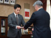 静岡県・御前崎市役所を訪れたのは、中部電力の林欣吾社長です。浜岡原発の地元・御前崎市の下村勝市長や議会関係者に謝罪しました。