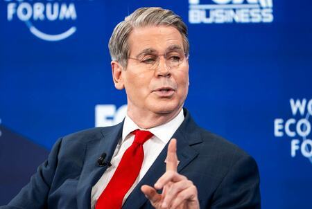 ベセント米財務長官=20日、スイス・ダボス(EPA時事) 【ワシントン時事】ベセント米財務長官は20日、CNBCテレビで、トランプ大統領によるデンマーク自治領グリーンランドの領有意向に欧州が猛反発していることに関し、冷静になるよう呼び掛けた。