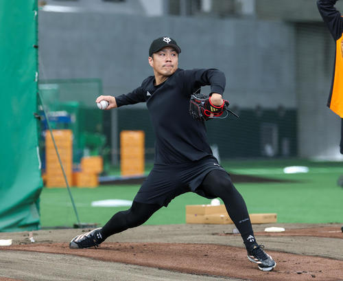 全体でのランニング、キャッチボールを終えると、真っ先にブルペンへ。どの投手よりも早くマウンドに上がり、ブルペン捕手を相手に立ち投げで16球。その後、捕手がひざをつくと力が入った。生きたボールが、低めに決まる。途中から主将の岸田行倫捕手(29)を相手にすると、すべて渾身(こんしん)の直球。受けた女房役は「伸びがある、きれいなストレート」と絶賛した。計34球を投げ終えると、バッテリー間ですぐに意見を共有し、直球の軌道について確認。環境が変わっても、コミュニケーションに不安はない。