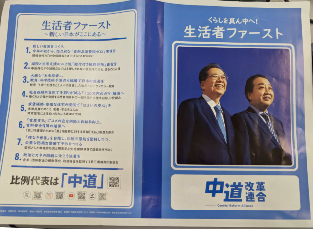 「高市早苗か野田佳彦か」を突きつけられた有権者にとって、マトモな野党第一党として選択肢たり得なかった中道改革連合のチラシ。ジャポニカの学習帳にしか見えない―――[言論ストロングスタイル]―