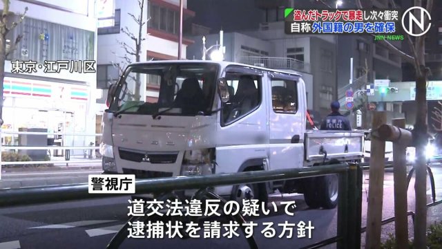 トラックは盗まれた直後、文京区で車に衝突し、さらにもう1台にぶつかって逃走しました。