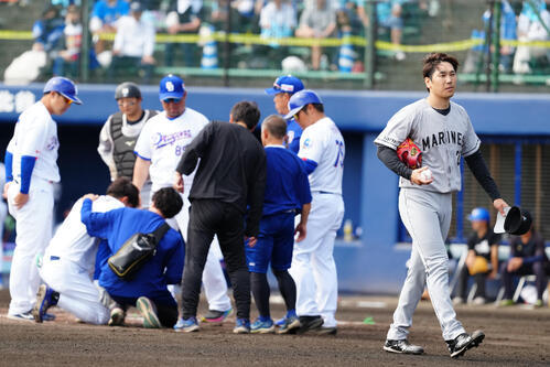 【ロッテ】石川柊太が1球目で危険球退場 中日福永の左側頭部に直撃