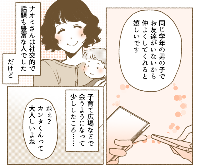 ナオミさんと話をするのはとても楽しかったです。夫や家族以外の大人と親しく話す機会がほとんどなかったため、ママ友っていいな……そう思っていました。