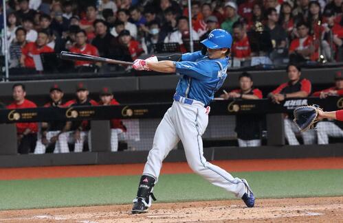 【台北(台湾)2月28日=永野高輔】日本ハム西川遥輝外野手(33)が3戦連発で、開幕スタメン入りへ大アピールした。味全との交流試合に「6番左翼」で出場。2回無死一塁で、右翼へ先制2ランを放った。23日阪神戦、27日台湾代表戦に続く1発。かつての同僚・ソフトバンク上沢直之投手(32)に相手が決まった開幕戦へ向けて、新庄剛志監督(54)から指南された新フォームで覚醒し始めている。