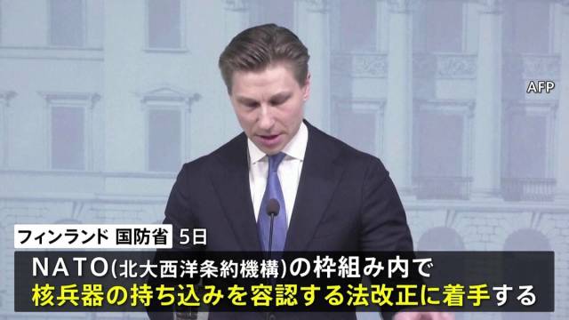 NATO=北大西洋条約機構の加盟国、フィンランドの国防省は5日、NATOの枠組みの中で、核兵器の持ち込みを容認する法改正に着手すると発表しました。