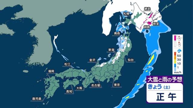 関東の雨は朝までに止んで、昼間は日本海側や北海道が雪や雨の中心になるでしょう。特に先日、大雪になったばかりの道東では再びドカ雪になるおそれがあります。北日本を中心に瞬間的に30メートル以上の暴風が吹き荒れて、ふぶいたり、横殴りの雨になる所もある見込みです。道東の雪は夜になると次第に収まりますが、日本海側を中心に雪や雨が続くでしょう。本州の平地でも雨が雪に変わる所が多くなりそうです。あすは北海道で雪が長引く可能性があります。だいぶ雪解けが進んできていますが、引き続き、なだれなどにご注意ください。