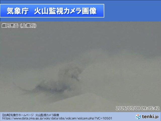 今日8日9時15分頃、北海道の雌阿寒岳(ポンマチネシリ火口)で噴火が発生しました。噴煙高度は火口上100m、噴煙の流向は南東です。ポンマチネシリ火口から約500mの範囲では大きな噴石に警戒をしてください。