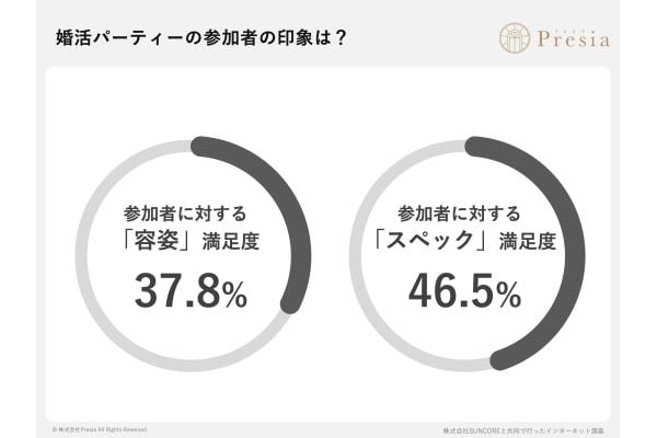 婚活パーティーの参加者の印象についての質問では、半数以上が容姿への不満やスペックへの不満、真剣度への不満を持っている事も分かりました。