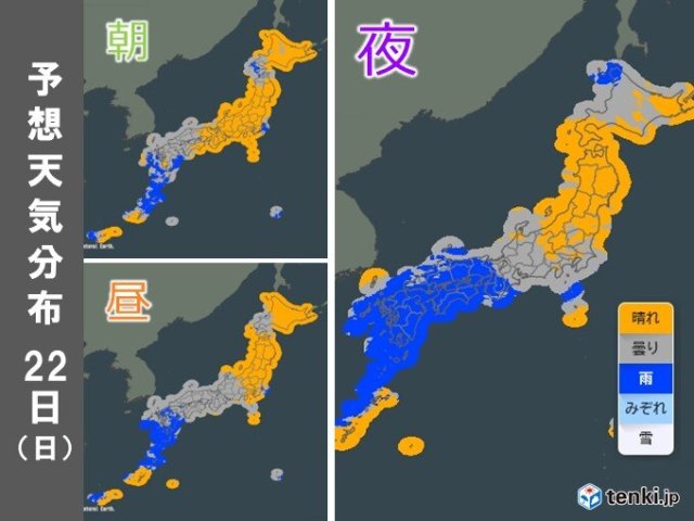 明日22日 西日本は次第に雨 東〜北日本はお出かけ日和