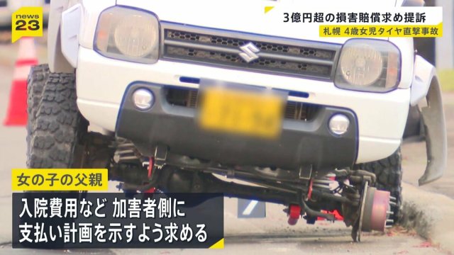 3年前、北海道札幌市で不正改造車から外れたタイヤが女の子を直撃した事故。父親らは30日、加害者側に3億円を超える損害賠償を求め、提訴しました。