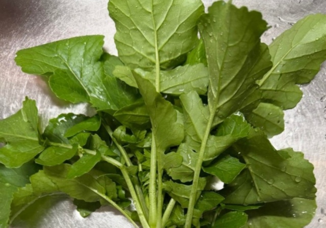 大根を抜いた瞬間、予想と違った姿にけいこさんもびっくりしたはず。でも、大根の葉っぱはこれだけ立派に育ったわけですから、こちらをメインで食べてもよいですよね!