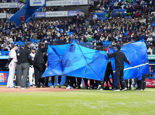 すぐにDeNA山本祐大捕手(27)が寄り添い、ヤクルトのトレーナーがかけつけた。その後、青いついたてで隠された中で処置を受けグラウンド外に運ばれた。