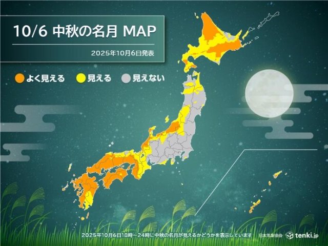 今夜は十五夜。昇る月は「中秋の名月」です。今日6日の夜は沖縄や九州から近畿、北陸、北海道で晴れるところが多くなります。こうしたところを中心に、今宵は煌々と輝く月が楽しめるところが多くなりそうです。