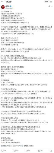 タレント武井壮(52)が14日までにX(旧ツイッター)を更新。がんにより24歳で亡くなった兄、武井情さんについて言及した。