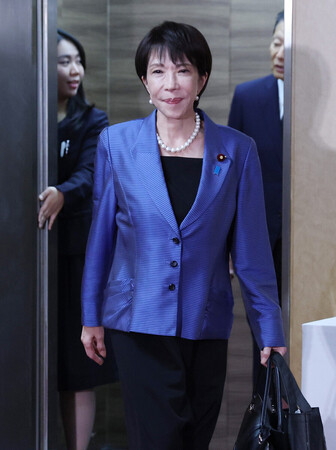 前日に日本維新の会と連立政権樹立で合意したばかりの慌ただしい船出。東京・赤坂の衆院議員宿舎を出発する際は、警護員(SP)らに「おはよう」と声をかけると、引き締まった表情で総裁車に乗り込んだ。