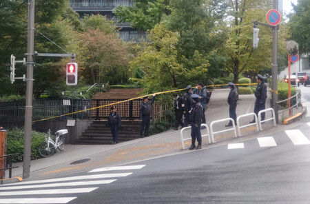 機動隊員が負傷した米大使館付近の現場周辺=24日午後、東京都港区 24日午後2時半ごろ、東京都港区の米大使館近くで、警戒中の機動隊員が不審な動きをしていた男に職務質問したところ、男は所持していたリュックと黒い袋からそれぞれ1本ずつ刃物を取り出した。複数の隊員で取り押さえようとしたところ暴れ、隊員1人が右足首に刃物が当たって負傷した。命に別条はない。