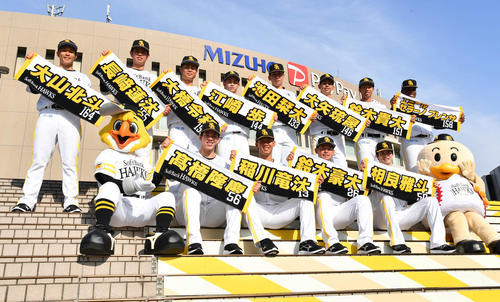 ソフトバンクの新入団発表が8日、本拠地ドーム球場に併設する商業施設で行われた。1位佐々木麟太郎内野手(20=米スタンフォード大)を除く支配下4選手と育成8選手が参加した。