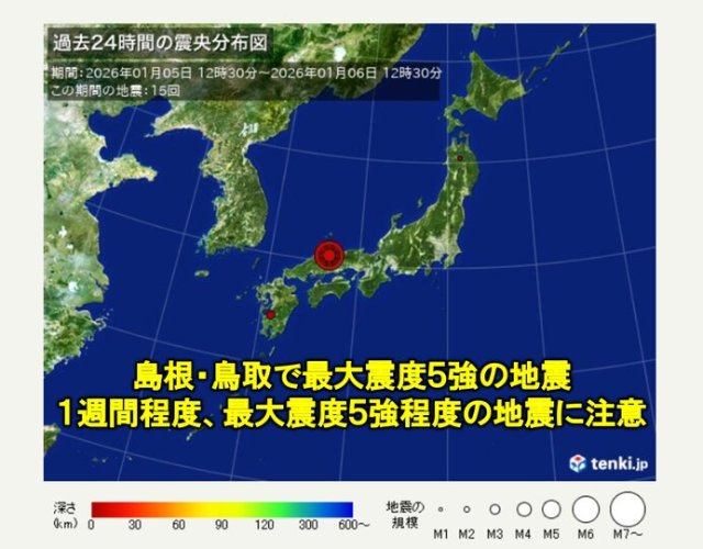 º£Æü1·î6Æü10»þ18ʬº¢¤ËÅ纬¸©ÅìÉô¤ò¿Ì¸»¤È¤¹¤ëºÇÂç¿ÌÅÙ5¶¯¤ÎÃϿ̤¬È¯À¸¤·¤Þ¤·¤¿¡£¤³¤ÎÃϰè¤Ç¤Ï²áµî¤Ë¡¢ÂçÃÏ¿ÌȯÀ¸¤«¤é1½µ´ÖÄøÅÙ¤Î´Ö¤ËÆ±ÄøÅÙ¤ÎÃϿ̤¬Â³È¯¤·¤¿»öÎ㤬¤¢¤ê¤Þ¤¹¡£Íɤì¤Î¶¯¤«¤Ã¤¿Ãϰè¤Ç¤Ï¡¢ÃÏ¿ÌȯÀ¸¤«¤é1½µ´ÖÄøÅÙ¡¢ºÇÂç¿ÌÅÙ5¶¯ÄøÅÙ¤ÎÃϿ̤ËÃí°Õ¤¹¤ë¤È¤È¤â¤Ë¡¢¤µ¤é¤Ë¶¯¤¤Íɤì¤ò¤â¤¿¤é¤¹ÃϿ̤¬È¯À¸¤¹¤ë²ÄǽÀ¤â¤¢¤ë¤¿¤á¡¢µ¤¾ÝÄ£¤ÏÃí°Õ¤ò¸Æ¤Ó¤«¤±¤Æ¤¤¤Þ¤¹¡£