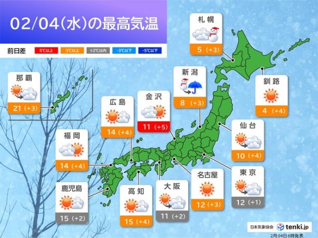 º£Æü2·î4Æü¤Ï¡¢Á´¹ñŪ¤Ëʿǯ¤è¤êµ¤²¹¤¬¹â¤¯¡¢½Õ¤ÎÍÛµ¤¤È¤Ê¤ê¤Þ¤¹¡£ÆüËܳ¤Â¦¤Ç¤Ï±À¤¬¹¤¬¤ê¤ä¤¹¤¯¡¢°ìÉô¤Ç±«¤äÀã¤È¤Ê¤ë¤Ç¤·¤ç¤¦¡£ÀÑÀã¤Î¿¤¤½ê¤Ç¤Ï¡¢ÍîÀã¤ä¤Ê¤À¤ì¤ËÃí°Õ¤¬É¬ÍפǤ¹¡£ÅìÆüËܤ«¤é²Æì¤Ï¤ª¤ª¤à¤ÍÀ²¤ì¤ë¸«¹þ¤ß¤Ç¤¹¡£