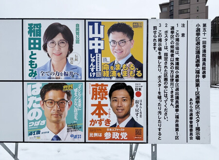 衆院福井2区の候補者ポスター=1月31日、福井県鯖江市
