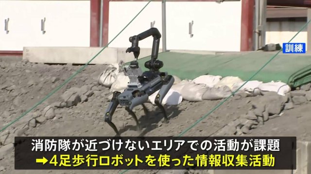 消防隊が近づけないエリアでの活動が課題となっていて、訓練では4足歩行ロボットを使った危険なエリアでの情報収集活動も行われました。