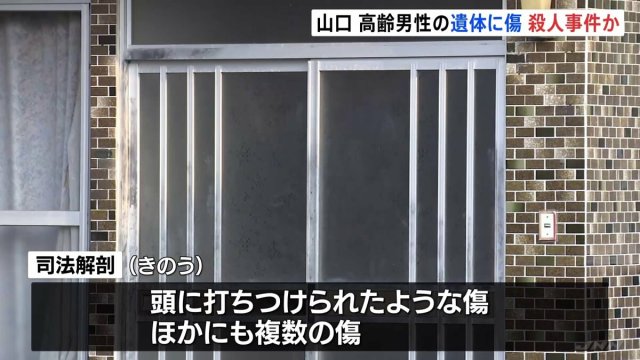山口県宇部市で、高齢の男性が自宅の中で死亡しているのが見つかりました。頭に打ち付けられたような跡があったことなどから、警察は殺人事件とみて捜査をしています。