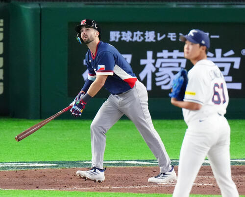 0−6の5回1死一、二塁、バブラが右翼へ3ラン。ベースを回りながら大きなジェスチャーで手をたたき、アマチュアが大半のナインを鼓舞した。ハジム監督は「最初の打席(二ゴロ併殺打)を取り戻した。おめでとうと言いたい」と評価。9安打で4点を奪った打線には「世界の強豪の韓国と胸を合わせて戦えた。練習の成果が出た」と話した。