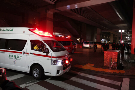 女性が刺された商業施設「サンシャインシティ」付近に集まる救急車など=26日午後、東京都豊島区