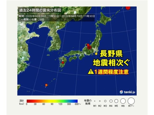 ºòÆü4·î18Æü(ÅÚ)¸á¸å¡¢Ä¹ÌËÌÉô¤ÇºÇÂç¿ÌÅÙ5¶¯¤ÈºÇÂç¿ÌÅÙ5¼å¤ÎÍɤì¤ò´Ñ¬¤·¡¢¤½¤Î¸å¤âÃÏ¿Ì³èÆ°¤¬Â³¤¤¤Æ¤¤¤Þ¤¹¡£µ¤¾ÝÄ£¤Ï¡¢¤³¤ÎÃϰè¤Ç¤Ï²áµî¤ËƱ¤¸ÄøÅ٤ε¬ÌϤÎÃϿ̤¬Â³È¯¤·¤¿»ö¤¬¤¢¤ë¤È¤·¤Æ¡¢1½µ´ÖÄøÅÙ¤ÏÃí°Õ¤¹¤ë¤è¤¦¸Æ¤Ó³Ý¤±¤Æ¤¤¤Þ¤¹¡£¼¡¤Ë±«¤¬Í½ÁÛ¤µ¤ì¤Æ¤¤¤ë¤Î¤Ï21Æü(²Ð)¤Ç¡¢Ä«¤Ï°ì»þŪ¤Ë¥¶¥Ã¤È¶¯¤Þ¤ë¤ª¤½¤ì¤¬¤¢¤ë¤¿¤áÃí°Õ¤¬É¬ÍפǤ¹¡£