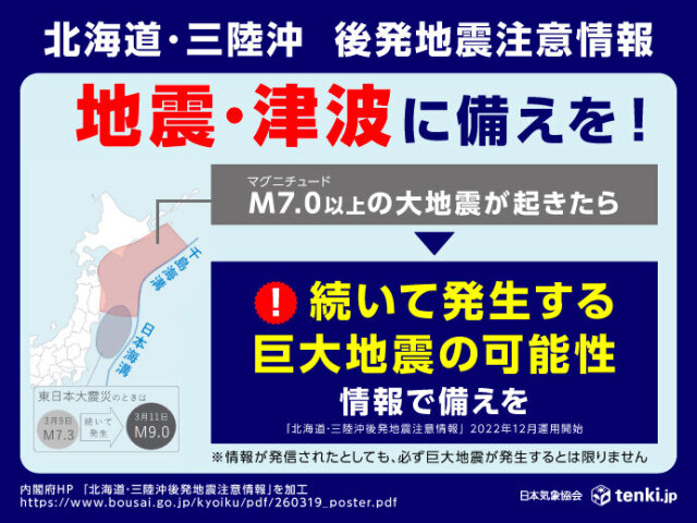 µðÂçÃϿ̤¬È¯À¸¤¹¤ë¤È¿ÓÂç¤ÊÈï³²¤¬Í½ÁÛ¤µ¤ì¤ë¤³¤È¤«¤é¡¢¸åȯÃϿ̤ؤÎÃí°Õ¤òÂ¥¤¹¤¿¤á¤Ë¡ÖË̳¤Æ»¡¦»°Î¦²­¸åȯÃÏ¿ÌÃí°Õ¾ðÊó¡×¤¬È¯É½¤µ¤ì¤Þ¤·¤¿¡£