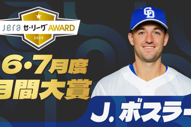 セ・リーグ公式配信番組「JERAセ・リーグレジェンドLIVE」が4日に配信され、番組内で『6・7月度 JERAセ・リーグAWARD』の公開選考会を実施。中日のJ.ボスラーが月間大賞に輝いた。