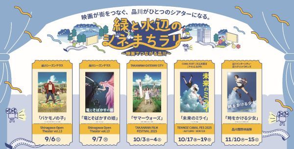 4つの会場の共通のテーマとして、今年はアニメ制作会社のスタジオ地図(東京)と連携し、スタジオ地図が制作した「バケモノの子」「竜とそばかすの姫」「サマーウォーズ」「未来のミライ」「時をかける少女」の5作品を各会場で上映する。4つの会場をめぐり、それぞれのイベントの非日常空間を楽しむことで、「映画の街 品川」を堪能してもらおうという企画。
