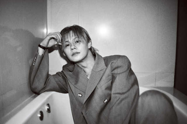 2枚目は、カイの大人の魅力が引き立つジャケットスタイルの衣装で、色気が匂い立つようなモノクロのカットだ。ホテルのバスタブで撮影され、カイ自身のスタイリングで表現されたファッショナブルな魅力と、艶っぽさ溢れる佇まいでこちらを見つめてくるような表情に思わずドキッとさせられることだろう。