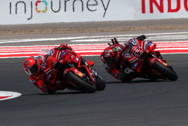 マルク・マルケス、フランセスコ・バニャイア(ドゥカティ・レノボ・チーム) 10月3日、2025年MotoGP第18戦インドネシアGP MotoGPクラスのプラクティスがマンダリカ・インターナショナル・ストリート・サーキットで行われ、マルコ・ベゼッチ(アプリリア・レーシング)がトップタイムをマークした。