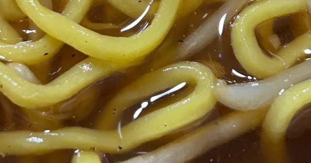 公開された写真を見てみると……スープの中に浮かぶ麺のすき間から、こちらをじっと見つめる“顔らしきもの”が! ぽかんと口を開けたようなシュールな表情が愛らしく、まるでラーメンの妖精がひょっこり現れたかのような光景です。
