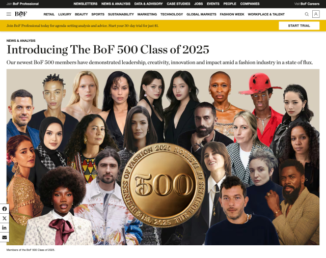 「BoF 500」は、BoFの編集者がファッション業界で最も影響力のある人物を選出しリストアップしたデータベースとして、2013年にスタート。現在は98ヶ国から合計1613人がリスト入りし、そのうち日本人は53人となっている。