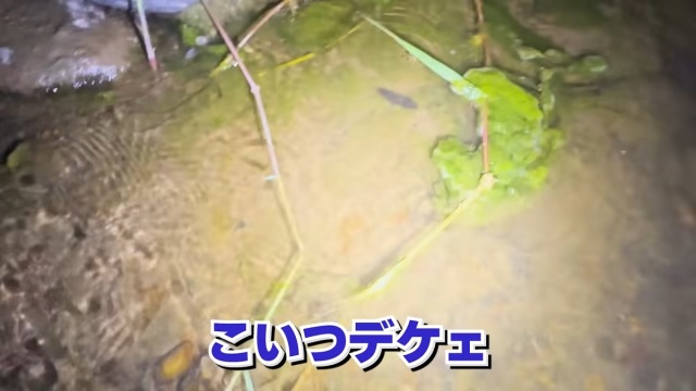 日が暮れたら川でエビの捕獲を開始。草の茂みの中や岩の間などに隠れているので、網や素手で次々と捕まえていきます。途中、小魚を手づかみでつかみ取ったときには、友人が「お前すごいな、熊じゃん」と感心していました。