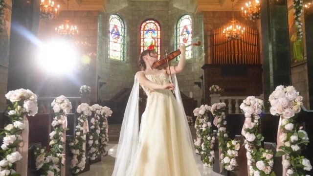 ¡¡º£²ó¤Îư²è¤ÎÉñÂæ¤Ï¡¢Èþ¤·¤¤¥¹¥Æ¥ó¥É¥°¥é¥¹¤¬µ±¤¯Áñ¸·¤Ê¶µ²ñ¡£¿¿¤ÃÇò¤Ê¥É¥ì¥¹¤Ë¿È¤òÊñ¤ó¤ÀÀÐÀ¤ó¤¬¥Ð¡¼¥¸¥ó¥í¡¼¥É¤ËΩ¤Á¡¢¥Ð¥¤¥ª¥ê¥ó¤ò¹½¤¨¤ë»Ñ¤Ï¤Þ¤ë¤ÇÅ·»È¤Î¤è¤¦¤Ç¤¹¡£