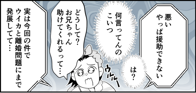 兄からの援助を期待していた私。ところが数日後、夫婦の離婚問題に発展したことを理由に、兄は援助を拒否。